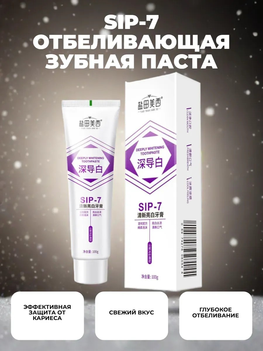 This toothpaste provides deep whitening, gently removing surface stains and restoring teeth's natural whiteness. Enjoy long-lasting fresh breath and confidence in your dental health with SIP-7. Volume: 120 g – the ideal choice for daily use!
