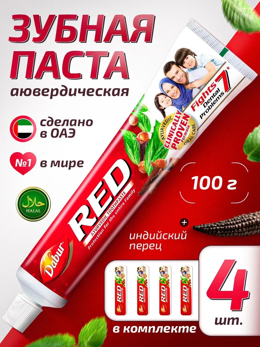 | Комплектация | Дабур Ред паста зубная; 4 шт по 100 гр; Зубная паста Дабур Ред 100 гр 4 шт.; Зубная паста Дабур Ред 4 шт.; Зубная паста Дабур Ред 4 шт. по 100 гр |