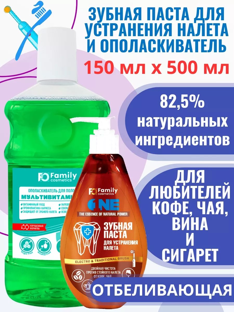 Комплектациязубная паста отбеливающая от налета 1 шт; ополаскиватель для полости рта мультивитаминный 1 шт