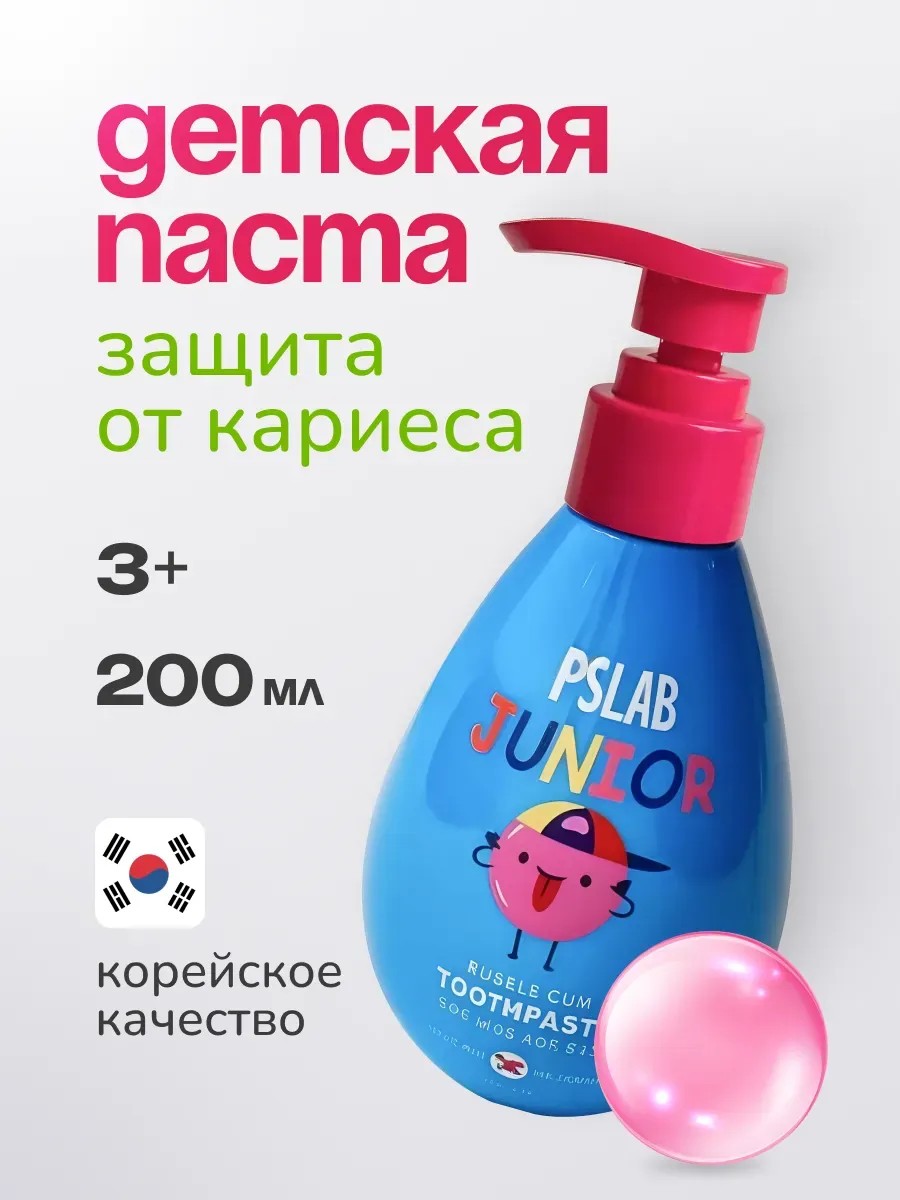 Korean quality! Replaces 4 caps of regular toothpaste, so it's a great deal! Designed for use by children aged 3 and up. Safe to swallow! No more caps! Kids love this Korean toothpaste. The paste provides comprehensive daily care thanks to natural ingredients. Xylitol fights cavities, restores enamel, and moisturizes the oral cavity. Stevioside adds sweetness and a pleasant taste. The paste has a pleasant bubble gum aroma! Low fluoride content provides safe protection against cavities. Saccharin-free. Designed for children aged 3 to 12. Toothpaste for children aged 6-12. This toothpaste has a dispenser and is very easy for children to use. Directions: Apply the required amount of toothpaste to the toothbrush and brush your teeth for 2-3 minutes. Avoid exposure to direct sunlight. Ingredients: Sorbitol, Water, Hydrated Silica, Polyethylene Glycol-8, Sodium Lauryl Sulfate, Sodium Lauroyl Sarcosine, Sodium Bicarbonate, Xanthan Gum, Stevioside, Menthol, Sodium Benzoate, CI 17200, Xylitol, Flavor. Fluoride reduced to <500 ppm.