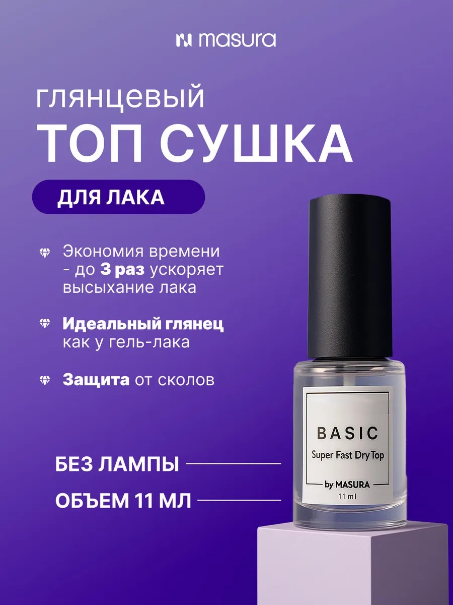 Глянцевый топ для лака с быстрой сушкой Basic от Masura — идеальное решение для тех, кто ценит быстроту и качество в процессе маникюра и педикюра. Прозрачный топ сушка с высоким блеском предназначен для использования на натуральных ногтях, обеспечивая яркий глянец, защиту и обновление цвета лака. Благодаря глянцевому эффекту этот топ придает вашим ногтям роскошный и ухоженный вид, делая маникюр более стильным и привлекательным. Специальный состав сушки для лака гарантирует быстрое высыхание лака без потери яркости и интенсивности цвета.