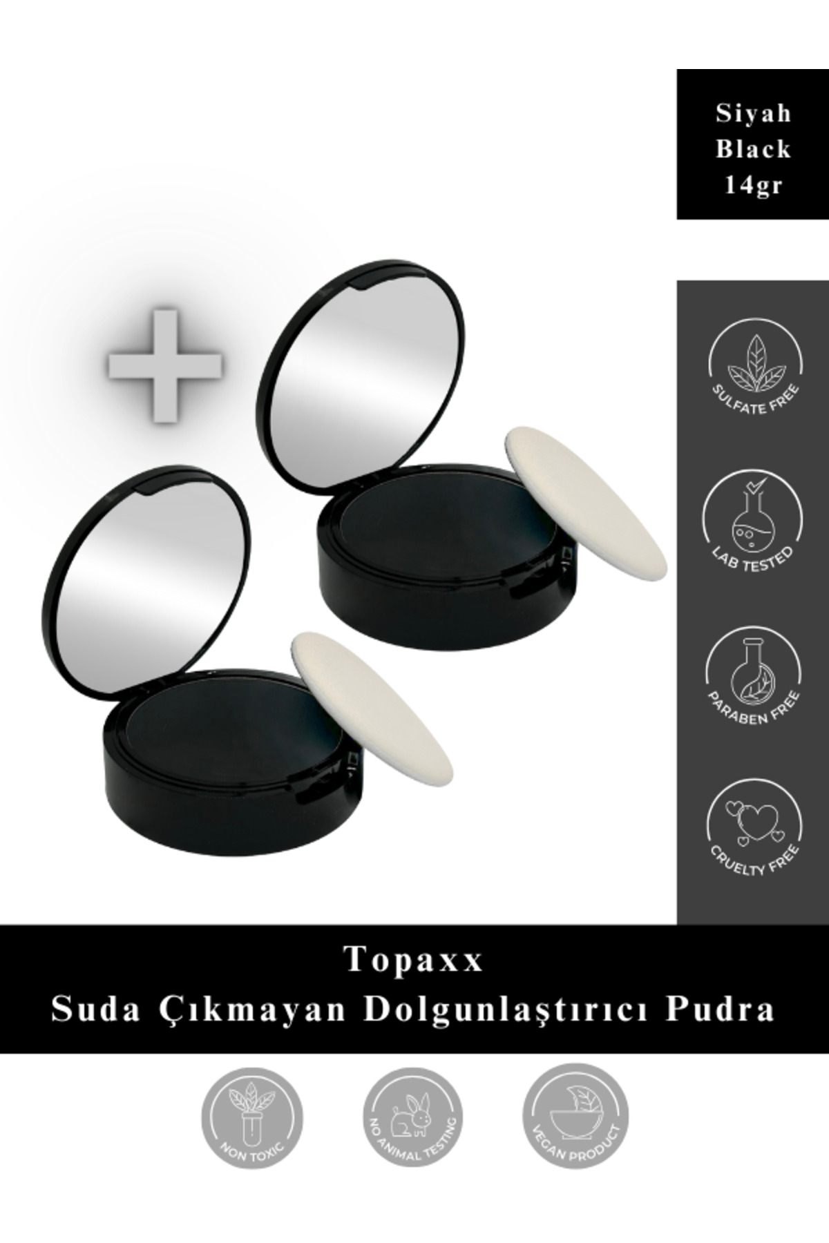 Topaxx 2 PCS Black 14gr Water-Resistant Hair Beard Plumper Baldness Concealer Powder