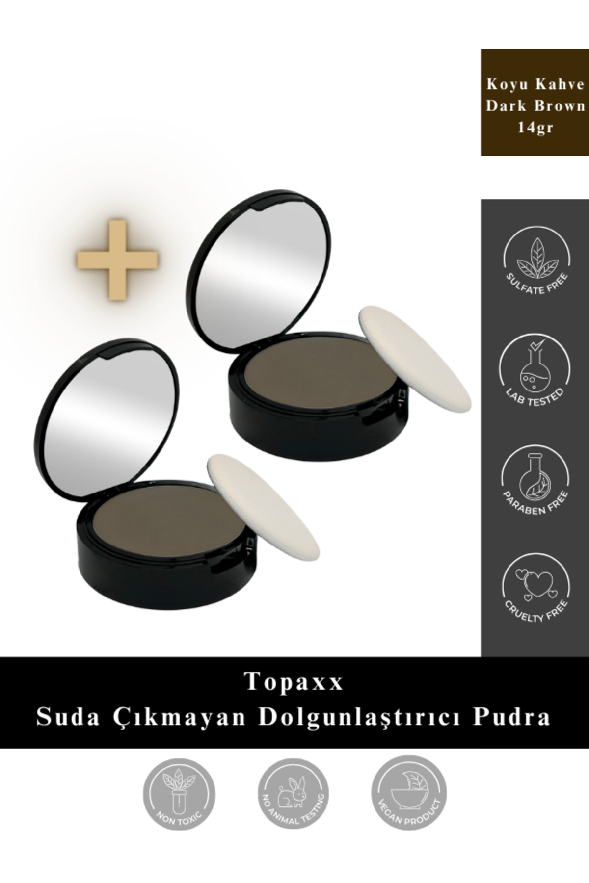 Topaxx 2 PCS Dark Brown 14gr Water-Resistant Hair Beard Plumper Baldness Concealer Powder