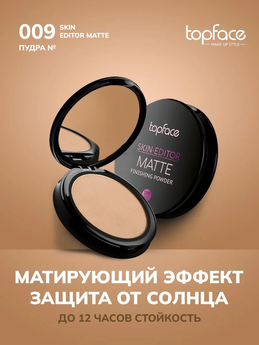 Компактная пудра для макияжа лица декоративной косметики TopFace: профессиональная легкая фиксирующая с матирующим эффектом. Пудра Skin Editor Matte, покрывает кожу лица легким, шелковистым и полупрозрачным слоем. Благодаря своей специальной формуле придает Вашей коже естественный и матовый вид, макияж остается свежим весь день и выглядит безупречным.
