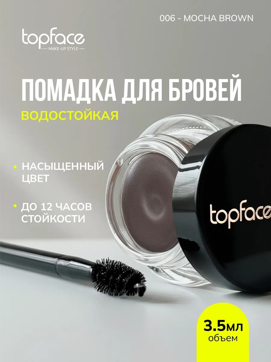 TopFace Eyebrow Gel Pomade in shade 006 Cocoa will help you achieve a neat and long-lasting look. This eyebrow styling gel firmly holds brow hairs in place and prevents frizz.