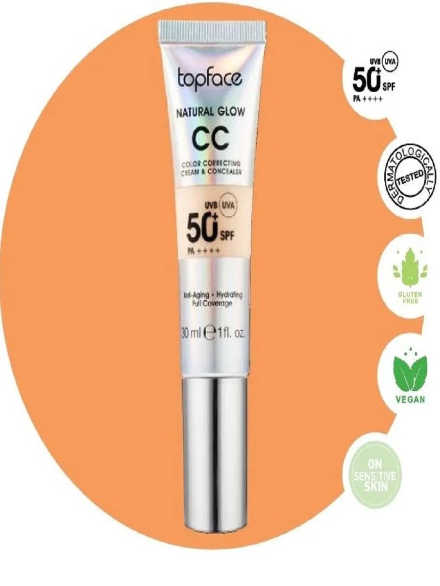 Topface Instyle PT472 Тональный крем CC.Уход за кожей и отличное перекрытие вместе.Благодаря отличной пигментации он мгновенно выравнивает тон кожи и придаёт яркий и привлекательный вид. Благодаря SPF50+ обеспечивает высокую защиту от вредного воздействия солнца. Его формула нового поколения , которую можно наносить на всё лицо , способствует уменьшению признаков старения и свежему виду кожу. Он помогает вам замаскировать признаки усталости ,мешки под глазами и тёмные круги благодаря отличному перекрытию и активным ингредиентам. Он имеет ровный , увлажняющий и освежающий финиш