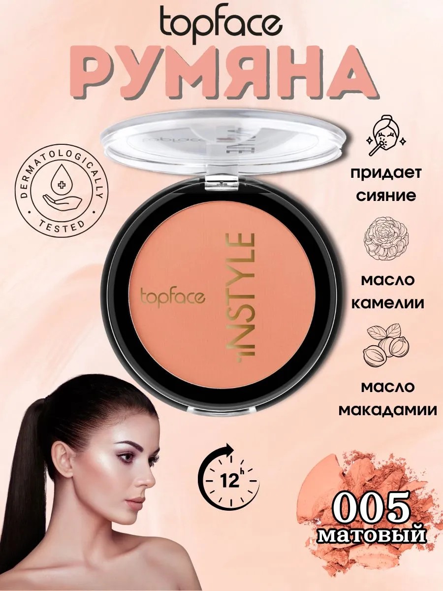 TopFace Instyle Blush On No005 PT354 — это ваш идеальный помощник для создания яркого и естественного макияжа.