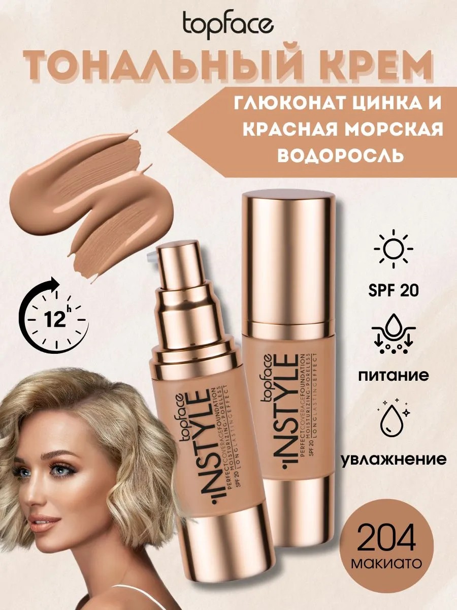 Тональный крем Topface Instyle, Тон №204 – Безупречный уход и идеальное покрытие для вашего лица