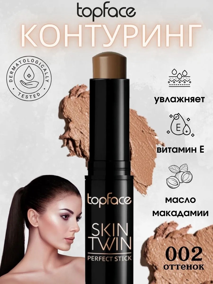 Topface Skin Twin Perfect Stick Contour 002 — это отличный выбор для создания выразительных контуров лица, легкий в использовании и идеально подходящий для быстрого макияжа.