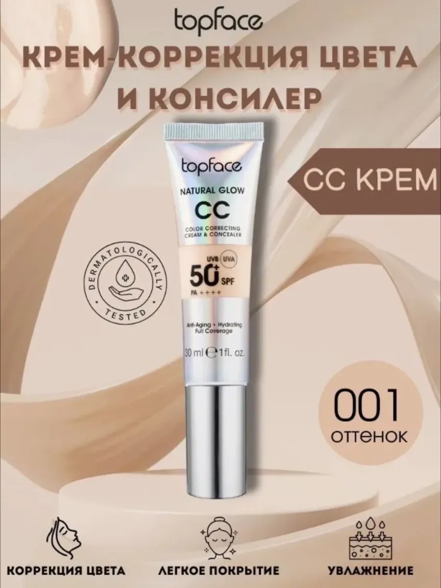 Topface Тональный крем Natural Glow CC Cream&Concealer PT472 SPF 50+ тон 001