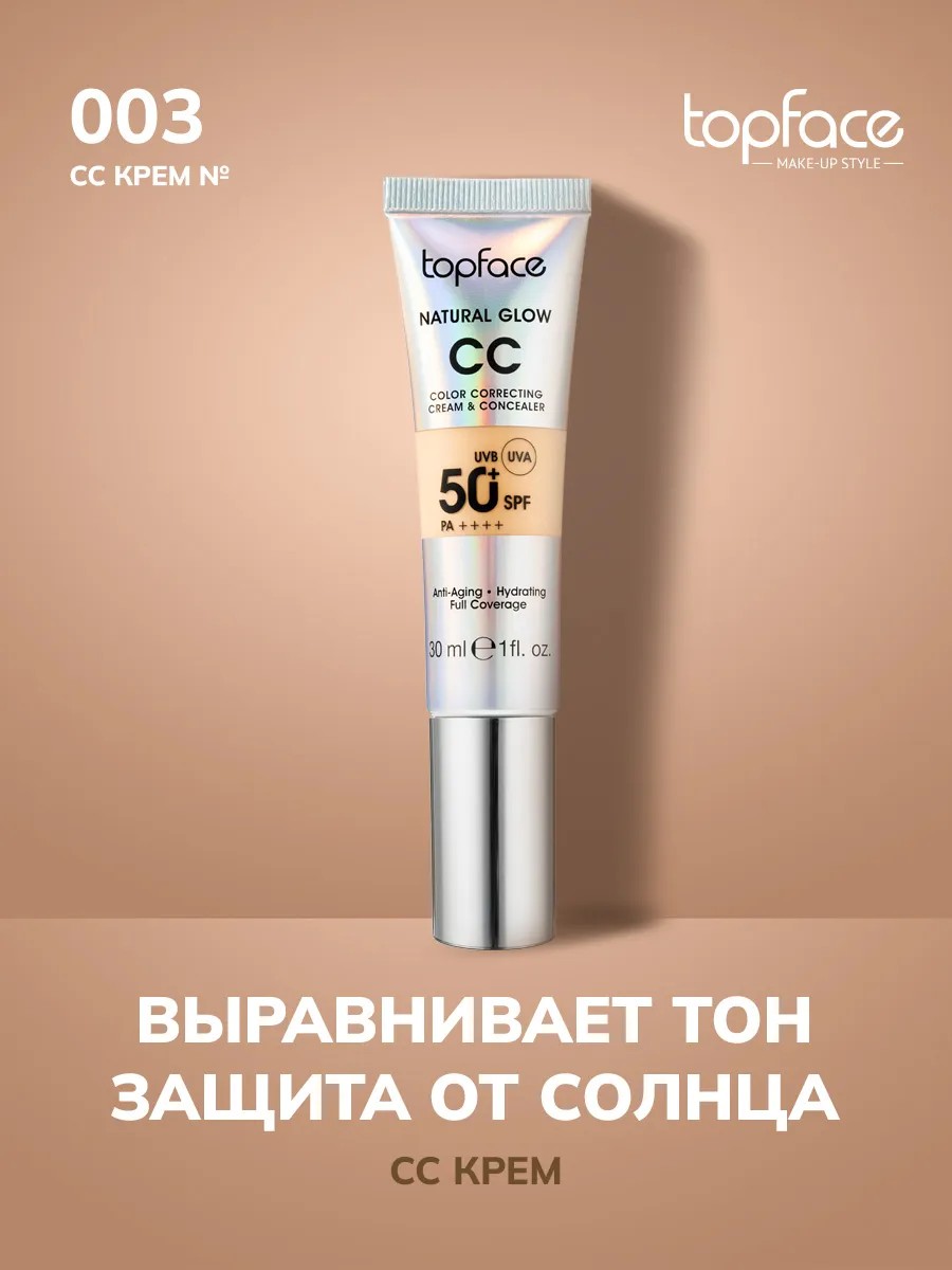 Topface Natural Glow CC Cream & Concealer is a multi-functional cream that combines the properties of a foundation and concealer. It is designed to even out skin tone, conceal imperfections, and give the face a natural glow. The formula is enriched with moisturizing ingredients and antioxidants, helping skin look healthy and fresh all day long. The cream applies easily and blends beautifully, providing lightweight coverage that can be built up for a more luminous effect.