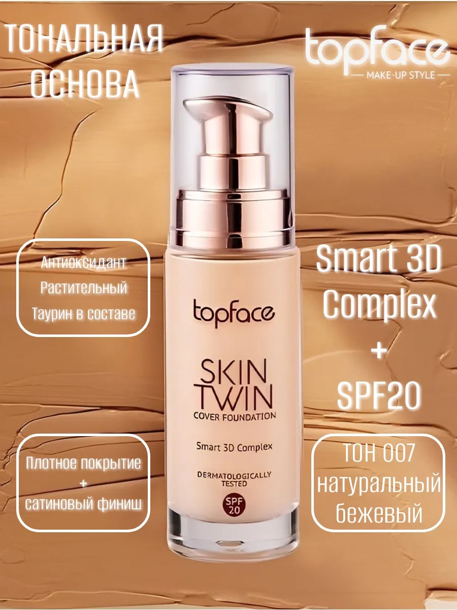 TopFace Тональная основа Skin Twin Cover Foundation SPF20, тон 007