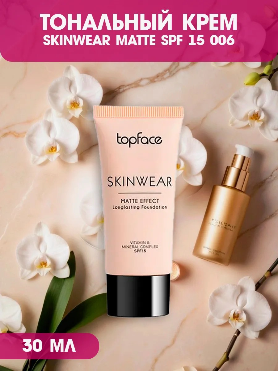 Тональный крем SKINWEAR благодаря содержанию минералов эффективно борется с признаками старения, обеспечивает коже безупречный внешний вид и матовый финиш.SPF15 обеспечивает защиту от вредных солнечных лучей.Благодаря своей стойкой формуле,обогащённой витаминами, крем будет держаться на коже в течении всего дня.