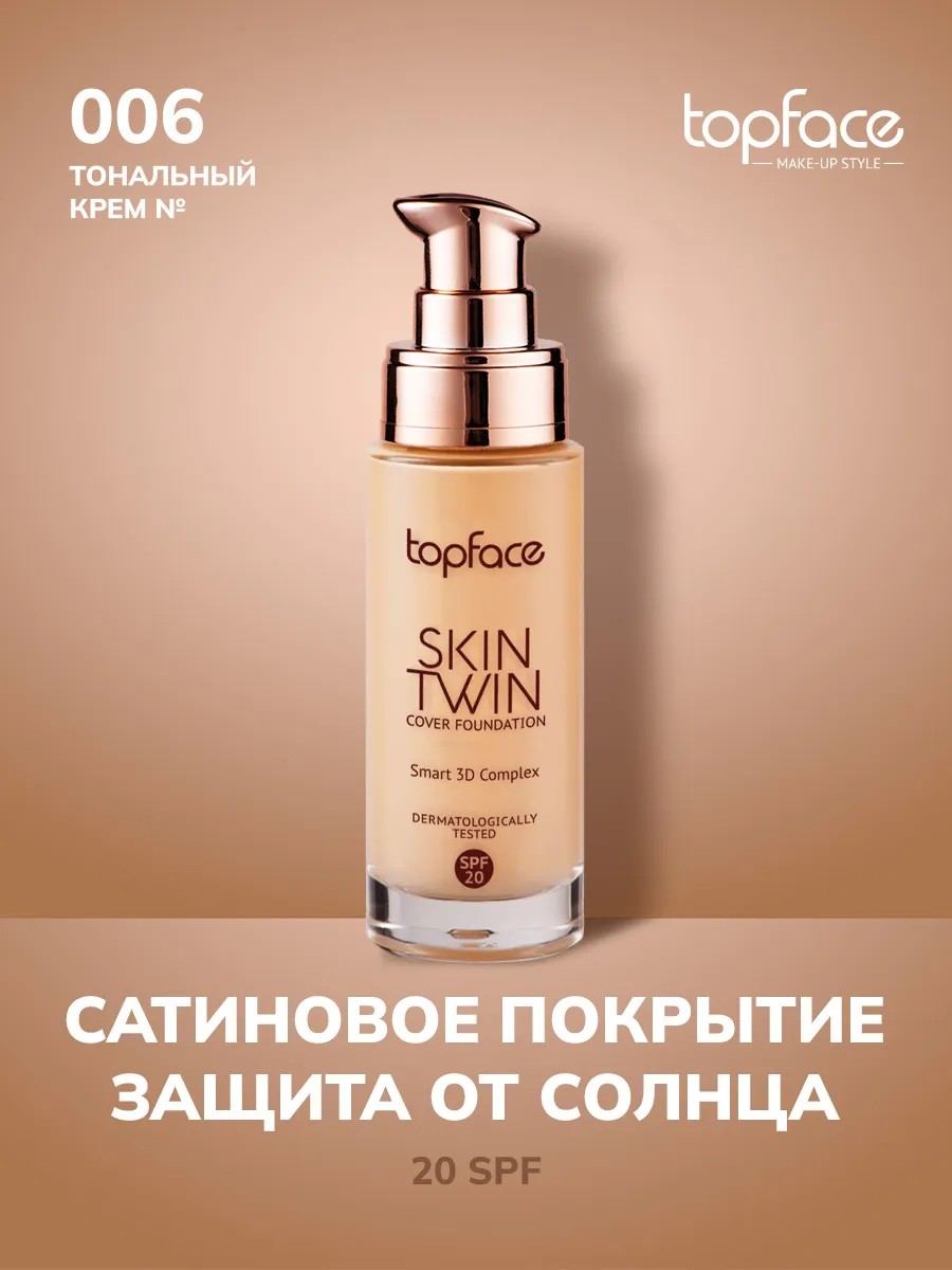 Тональный крем TopFace Skin Twin Cover - универсальное средство для макияжа и ухода за кожей лица. Обладает легкой текстурой, легко наносится и матирует кожу, при этом увлажняет ее на целый день, не создает эффект маски, позволяя “дышать”. Специальная состав помогает бороться с пигментацией и морщинами, скрывает поры, делая ее более упругой и сияющей. Водная основа позволяет тональной основе быть незаметной на лице и не закупоривать поры, а также отлично подходит для кожи, склонной к угревой сыпи. Не требует использования выравнивающей и увлажняющей базы, что делает применение косметики еще более простым и приятным.