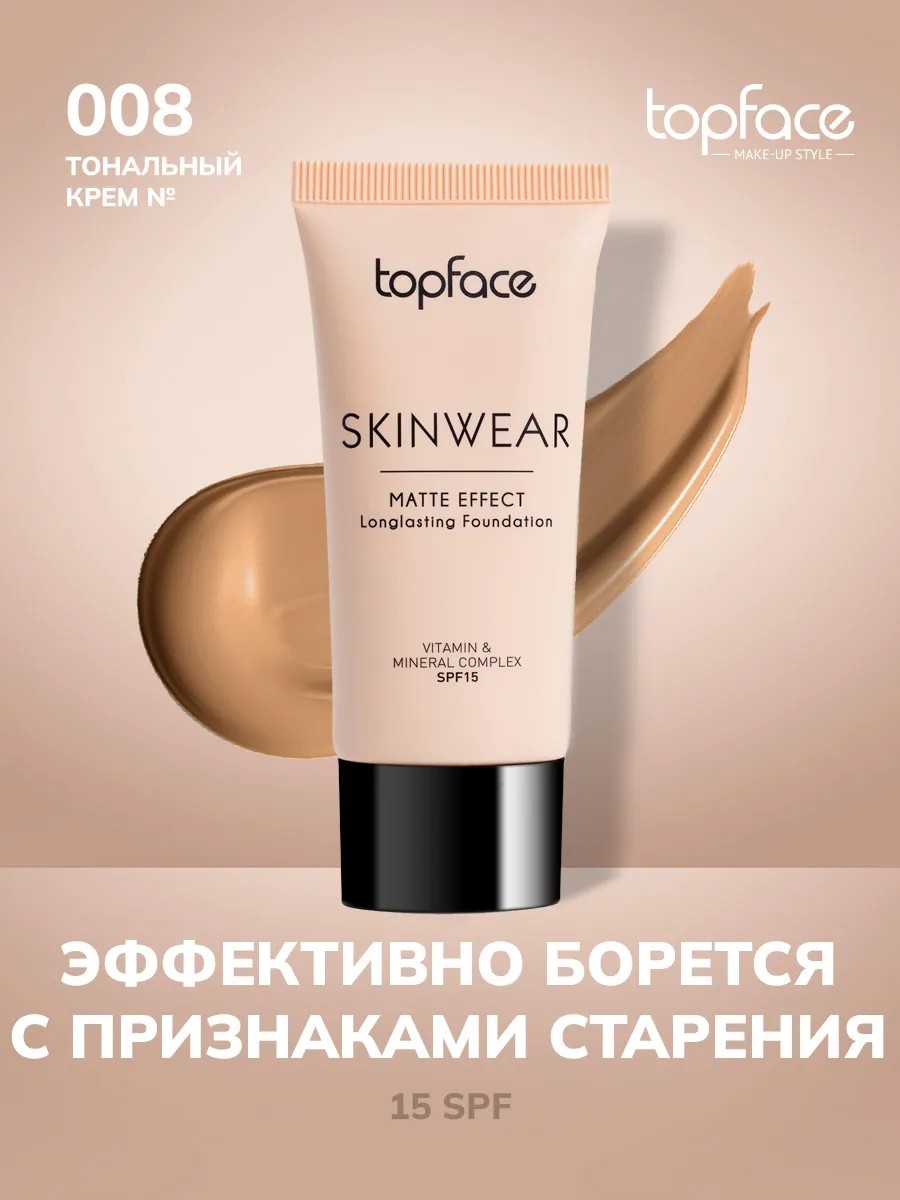 Ищите тональный крем, который скроет все несовершенства и позаботится о состоянии кожи? Topface Skinwear Matte Effect SPF 15 станет именно таким пополнением на вашем туалетном столике. Средство надежно перекрывает все недостатки, сглаживает рельеф и обеспечивает матовый финиш.