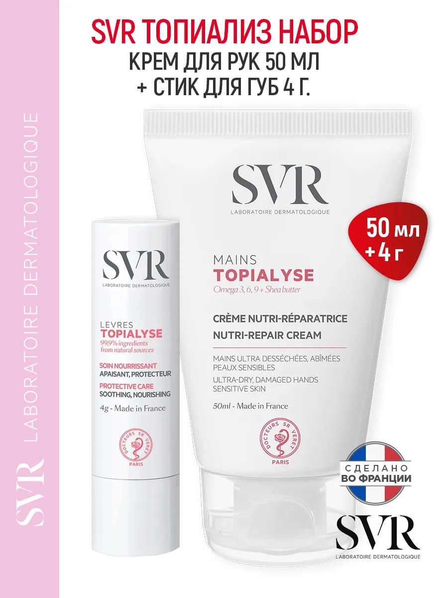 SVR Topialyse Крем для рук 50мл + Стик для губ 4г (СВР Топиализ)