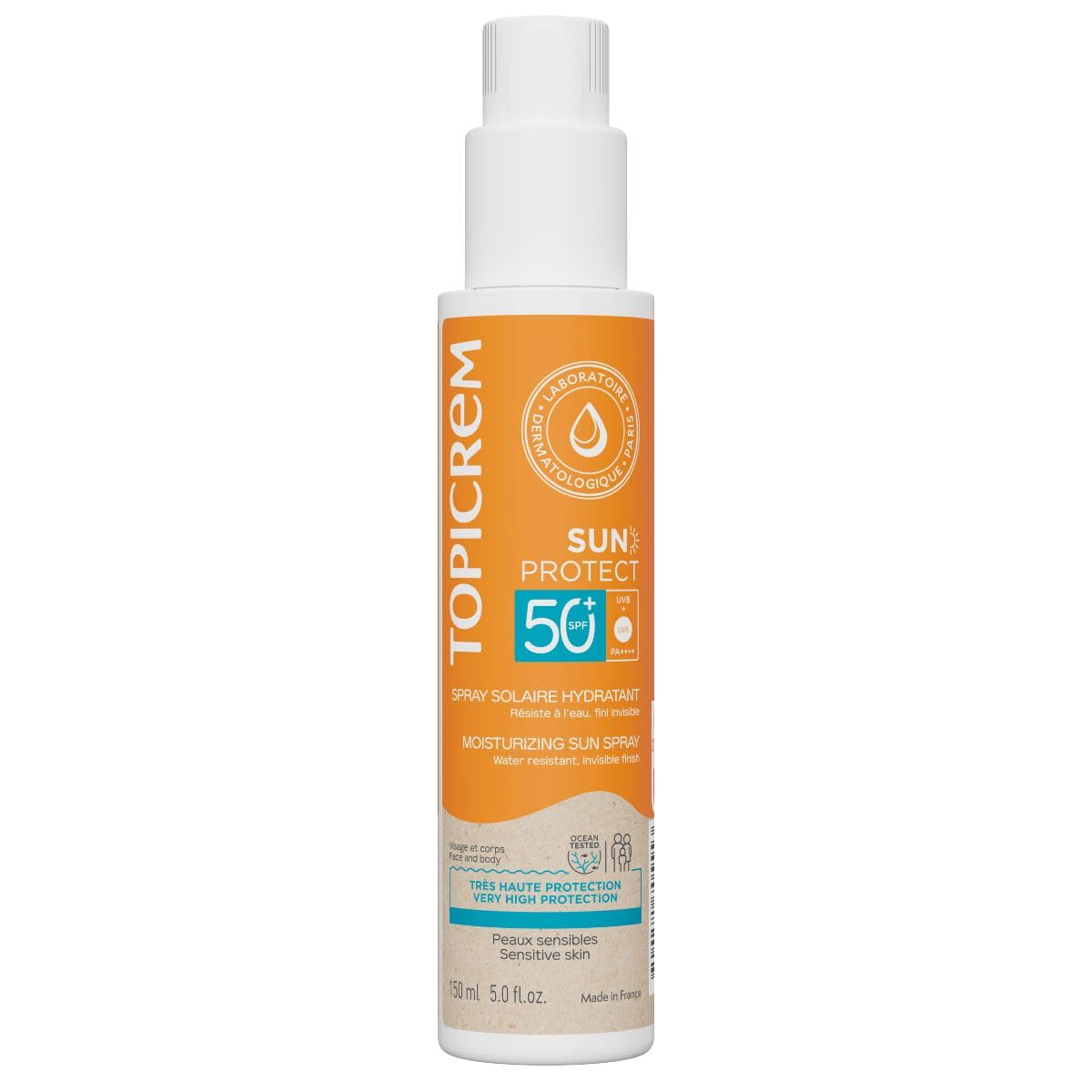 Topicrem Sun Protect Moisturizing Sun Spray SPF50 ✓ Moisturizes and protects the skin ✓ 8 hours of hydration ✓ SPF50 protection ✓ For sensitive skin ✓ For adults, teenagers, and children from 3 years old ✓ Ultra-fine texture, pleasant fragrance enriched with echinacea extract, an antioxidant that prevents photoaging. It also contains organic sun filters for optimal SPF50 protection and glycerin, known for its moisturizing properties. With Sun Protect, TOPICREM is committed to reducing its environmental impact: the moisturizing sun care formula has been tested to verify its effects on marine biodiversity : algae, corals, and cnidarians. We have chosen an eco-friendly bottle with at least 29 recycled plastic and a practical twist pump with nozzle protection, without a removable cap to prevent it from getting lost in the sand. Combine efficacy, safety, and comfort with Topicrem, the dermatological brand from Mayoly Spindler pharmaceutical laboratories. We produce our products in France in close collaboration with healthcare professionals. Thanks to active ingredients concentrated in the correct dosage, our formulas aim to achieve a perfect balance between efficacy and high tolerance for all types of sensitive skin. Instrumental test on 30 subjects Algae test: ecotoxicity assessment on marine algae according to ISO 10253:2016 CORAL TEST: ecotoxicity assessment by bleaching study on coral fragments after 72 hours Snack test: in vitro ecotoxicity test on Cnidaria cells. For external use. INGREDIENTS Ingredients: aqua (water), dibutyl adipat, dicaprylyl carbonate, BIS ethylhexyloxyphenol methoxyphenyl triazine, butyl methoxidibenzoyl cococapyl caprate, HYLHEXYY. L triazone, polyglyceryl-6 stearate, trimethylppentanediol acid glycerin crosspolymer, microcrystalline cellulose, phenylbenzimidazole acid, propanediol, betaine, hydroxy. ACETOPHEN. ONE, STEAROYL GLUTAMATE, PARFUM (FRAGRANCE), ACRYLATES COPOLYMER, XYLITYLGLUCOSID, CELLULOSE GUM, SODIUM HYDROXYLITOL, POLYGLYCERYL-6 BEHENATE, GLYCERIN, TOCOPHEROLOLOLOLOLOL. XYLITO L, trisodium ethylenediamine dissucinate, nasopus seed oil, pentyl glycol, dimethyl phenethyl acetate, echinacea puree extract, sodium benzoate, lactic acid, potassium sorbate DIRECTIONS Apply generously to the face and body before contact and reapply frequently, especially after perspiration, bathing, or toweling. SAFETY WARNING For external use only. Avoid contact with eyes. See moreFor the well-being of your skin: combine effectiveness, safety, and comfort with Topicrem. We develop and manufacture our products in France in close collaboration with healthcare experts. Thanks to active ingredients concentrated in the right dosage, our formulas aim to achieve a perfect balance between effectiveness and high tolerance for all types of sensitive skin. Topicrem is a dermatological brand from the Mayoly Spindler pharmaceutical laboratories, a French, independent, family-owned laboratory. Key ingredients: It is enriched with echinacea extract, an antioxidant that prevents photoaging. It also contains organic sunscreens for optimal SPF 50 protection and glycerin, known for its moisturizing properties. Its fluid, non-greasy, and non-sticky texture absorbs quickly into the skin without leaving white residue. Suitable for sensitive skin: This moisturizing sunscreen spray has been tested under dermatological and ophthalmological control on sensitive skin exposed to the sun. This moisturizing sunscreen spray is suitable for the sensitive skin of adults, teenagers, and children from 3 years old. The eco-friendly bottle contains at least 29 recycled plastic and features a convenient twist pump with a nozzle protector and no removable cap to prevent it from getting lost in the sand. Visible results: This face and body sunscreen moisturizes skin for 8 hours while enveloping it in a delightful fragrance. It has an ultra-fine, lightweight spray texture with an invisible finish. Its formula has been tested on oceans and marine biodiversity (algae, corals, and cnidarians ). Water, sweat, and sand resistant, this SPF 50 liquid sunscreen won't sting your eyes. Very high protection: Protect your skin from the sun with this SPF 50 moisturizing sunscreen spray. Broad-spectrum organic sun filters protect the skin of the whole family (ages 3 and up) against UVA and UVB rays. Its formula intensely moisturizes for 8 hours, and its echinacea extract helps prevent photoaging. Designed for your comfort, it has a sunny fragrance with notes of peach blossom and frangipani and a non-greasy texture that leaves no trace.Topicrem - Sun Protect Spray Solaire Hydratant Visage et Corps SPF50 - Fluide Solaire Très Haute Protection, Donne 8 Heures - Soin Peau Sensible, A partir de 3 ansDESCRIPTION DU PRODUIT DESCRIPTION DU PRODUIT Sun Protect Spray Solaire Hydratant SPF50 Topicrem ✓ Hydrate et protège la peau ✓ 8 heures d'hydratation ✓ Protection SPF50 ✓ Pour les peaux sensibles ✓ Pour adultes, adolescents et enfants à partir de 3 ans ✓ Texture ultra fine, parfum agréable enrichi en extrait d'échinacée, un agent antioxydant qui prévient le photovieillissement. Il est également composé de filtres solaires organiques pour une protection optimale du SPF50 et de la glycérine reconnue pour ses propriétés hydratantes. Avec Sun Protect, TOPICREM s'engage à réduire les effets sur l'environnement : la formule de soin solaire hydratant a été testée pour vérifier ses effets sur la biodiversité marine : algues, coraux et cnidaires. Nous avons choisi une bouteille écologique avec au moins 29 de plastique recyclé et une pompe Twist pratique avec protection de buse, sans capuchon amovible pour éviter de la perdre dans le sable. Combinez efficacité, sécurité et confort avec Topicrem, marque dermatologique des laboratoires pharmaceutiques Mayoly Spindler. Nous produisons nos produits en France en étroite collaboration avec des spécialistes de la santé. Grâce à des principes actifs c