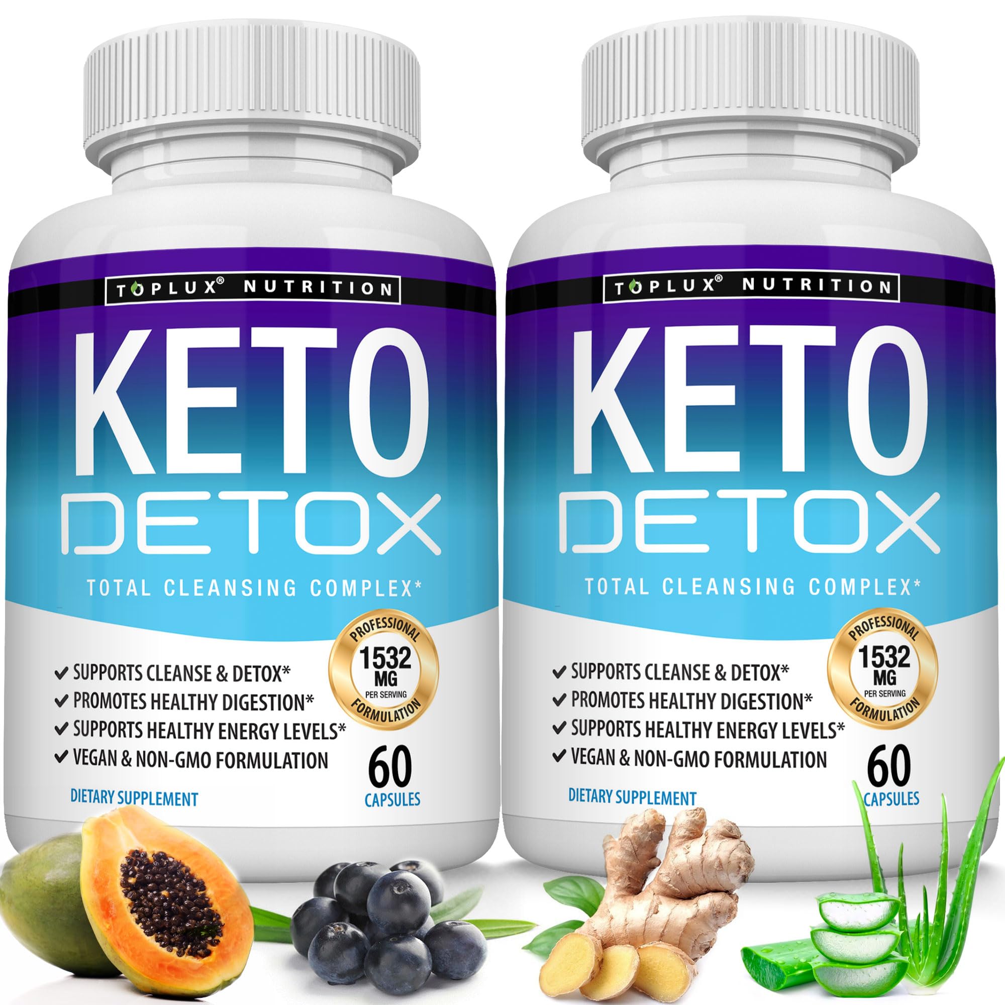 Toplux Keto Detox Pills Advanced Cleansing Extract 1532 Mg Natural Acai Colon Cleanser Formula Flush Toxins & Excess Waste for Men Women 60 Capsules Supplement 60 Count (Pack of 2)