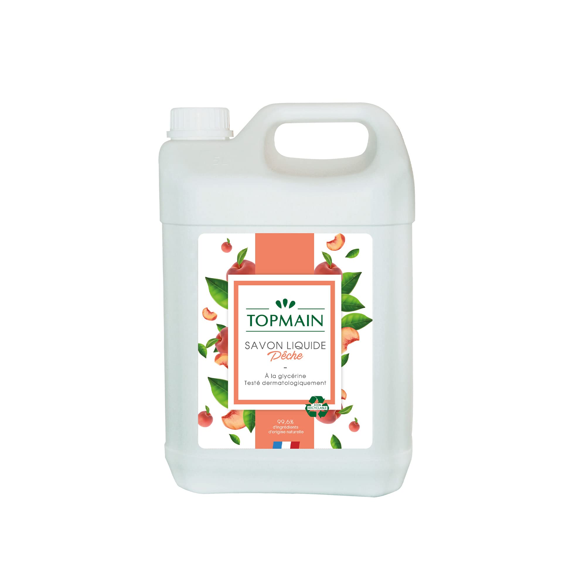TOPMAIN - Savon main liquide - Formule nettoyante et dégraissante - doux et hydratant - Parfum pêche - 5L - Fabrication française Unique
