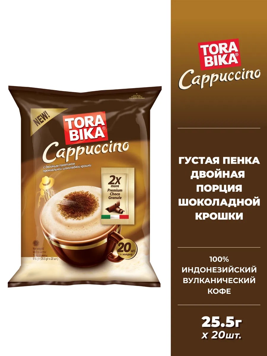 Torabika - известный во всем мире бренд растворимого кофе высочайшего качества. Уникальный условия для произрастания кофейных зёрен, инновационный подход и система контроля качества Torabika позволяет заварить чашку поистине вкуснейшего кофе с неповторимым ароматом. Кофейный напиток Torabika Cappuccino (Торабика Капучино) с пакетиком шоколадной крошки и густой пенкой, приготовленный по итальянскому рецепту, придется по вкусу каждому ценителю капучино.