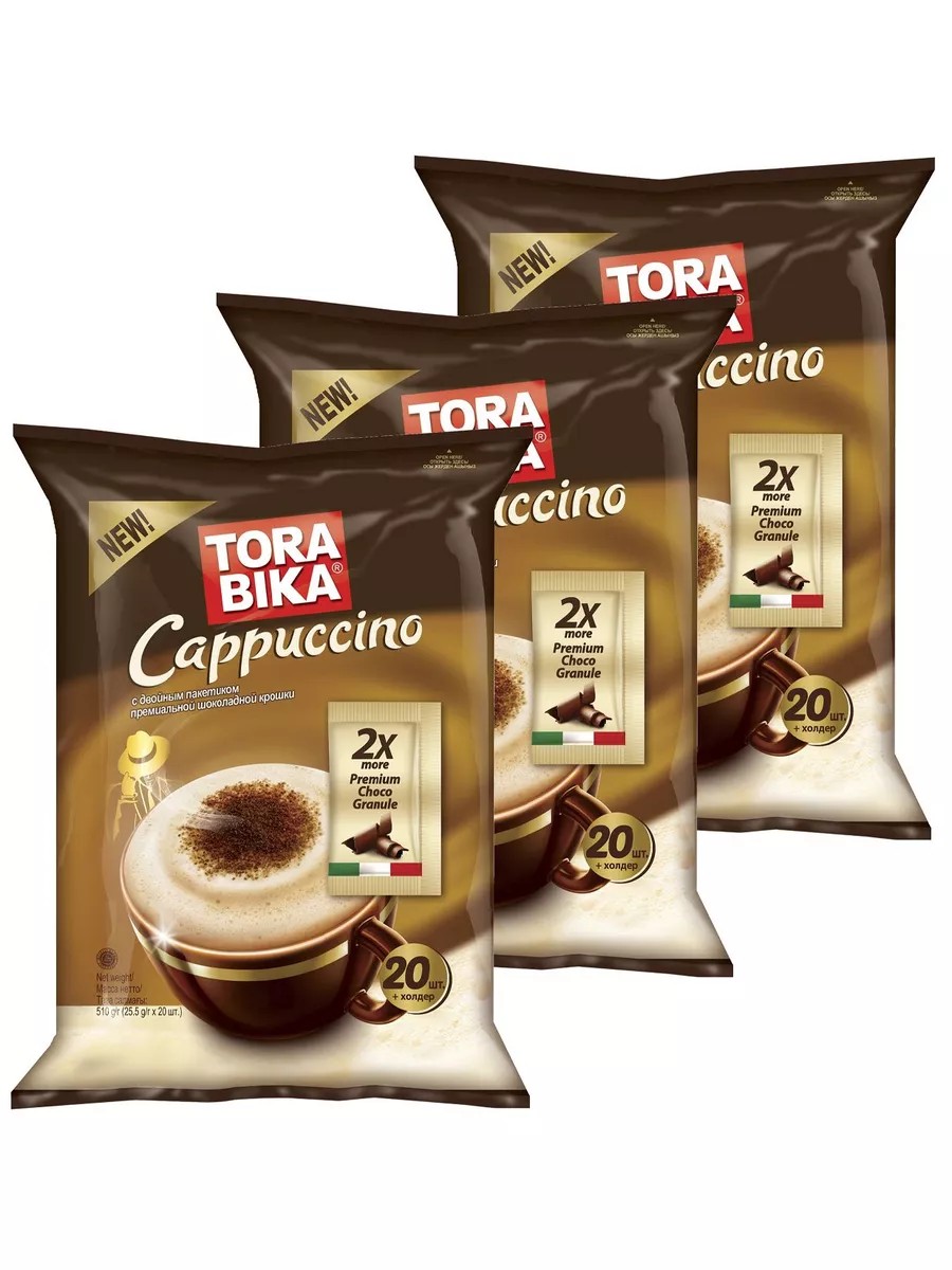 Торабика капучино ( TORA BICA Cappuccino )- известный во всем мире бренд растворимого кофе высочайшего качества. Напиток кофейный растворимый, изготовленный из отборных зерен по самой современной технологии INSTANT COFFEE в Индонезии, с дополнительным пакетиком шоколадной крошки и обильной сливочной пенкой. Вкус нежный, ароматный и мягкий.