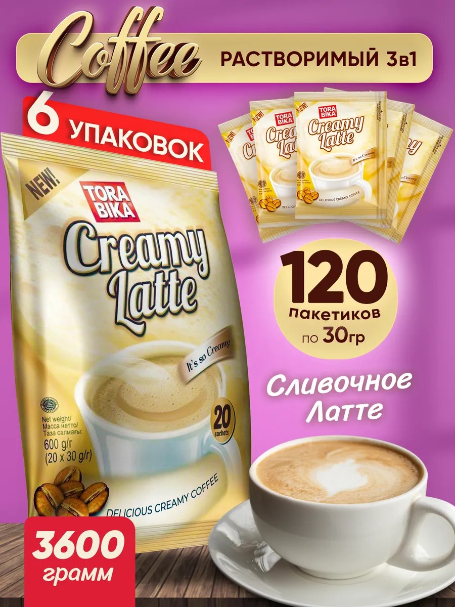 ToraBika Кофе растворимый в пакетиках Creamy Latte латте 3в1, 120 шт