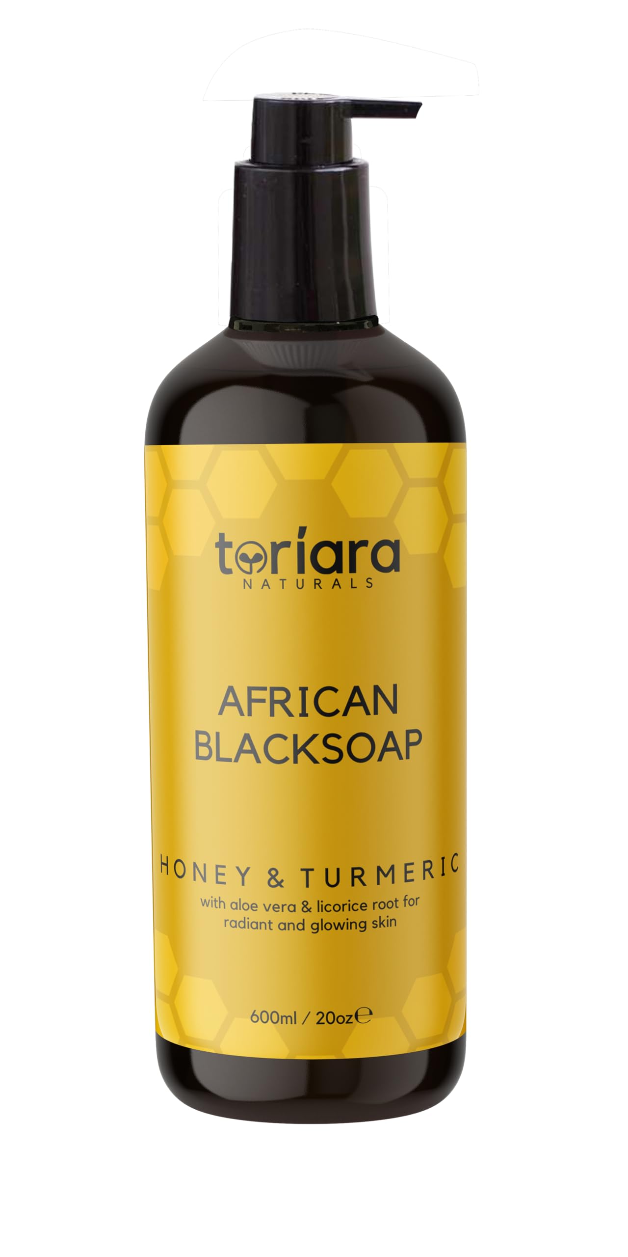 Toriara Naturals African Black Soap Honey and Turmeric Blended with Honey Aloe Vera Licorice Root- Radiant and Glowing 600ml