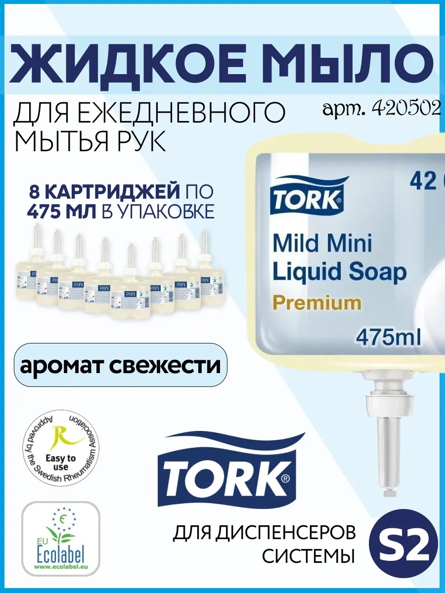 | Комплектация | Жидкое крем мыло Tork S2 402502, 8 картриджей по 475 мл |