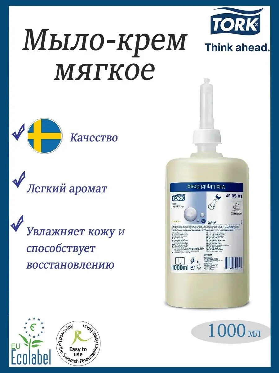 Мягкое жидкое мыло-крем Торк подходит для большинства типов кожи, подарит приятный свежий аромат и нежную пену. Мыло-крем предназначено для частого применения и не раздражает кожу рук, так как в состав входят гипоаллергенные компоненты. Одноразовый гигиеничный картридж значительно упрощает замену мыла, предотвращает бактериальное загрязнение. Сам сменный картридж сжимается при использовании, снижая количество бытовых отходов. Дозировочный клапан подает порцию в 1 мл средства и предотвращает перерасход продукта. Имеет сертификат EU Flower удостоверяющий качество продукции и ее соответствие экологическим стандартам, действующим в странах Европейского Союза. Качество Premium: содержит увлажняющие и восстанавливающие липидный слой компоненты. Дерматологически протестировано. Очищает и смягчает кожу рук. Безопасная, мягкая формула. Свежий аромат. рН 5,0. Цвет: кремовый.