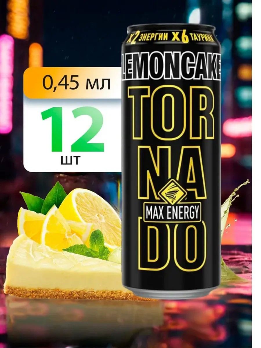 Попробуй и зарядись тропической силой! Энергетик MaxEnergy Lemoncake 12шт— напиток, обладающий отличными вкусовыми качествами. Торнадо макс замечательный энергетический напиток превосходит все ожидания. Торнадо энергетик- безалкогольный тонизирующий напиток, который подарит вам натуральный и мощный заряд энергии. Витаминный комплекс, входящий в состав Tornado энергетик 12шт, делает напиток не только вкусным, но и полезным. В одной бутылке энергетика содержится почти половина суточной дозы витаминов. Мы предлагаем ящик энергетиков, который идеально подойдет как для личного использования, так и для тех, кто желает приобрести энергетики оптом. Коробка энергетиков Tornado 12шт - это отличная возможность сберечь средства и всегда иметь под рукой свежую порцию энергии. Энергетик не только безопасен, он даже полезен для здоровья! Кофеин в составе не только помогает проснуться. Он повышает настроение и стимулирует синтез дофамина («гормона радости»). Повышает работоспособность, причем как при умственных, так и при физических нагрузках. Таурин - это натуральная аминокислота, которая оказывает мягкий тонизирующий эффект без побочных действий. Он усиливает иммунитет, снижает уровень сахара в крови, усиливает восстановительные способности организма. Спортсменам и работникам умственного труда таурин помогает достигать лучших результатов. Находиться в обществе этих энергетических напитков - настоящее приключение среди волны свежести, жизни и активности. Закажи упаковку из 12 штук этих энергетиков прямо сейчас и ощути всю силу бурлящей бодрости!