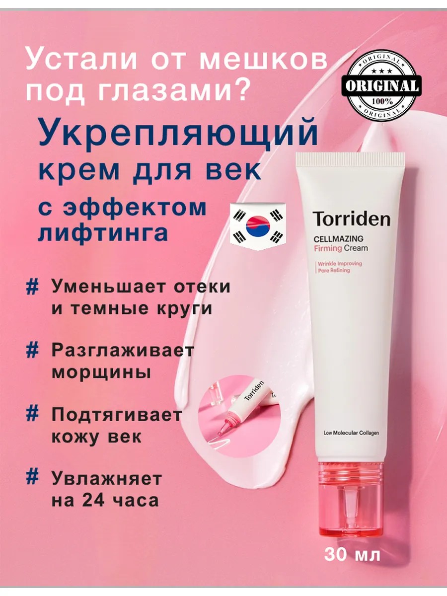 Подтягивающий липосомальный крем для век с коллагеном Torriden Cellmazing Firming Eye Cream инновационное средство для интенсивного ухода за нежной кожей вокруг глаз.