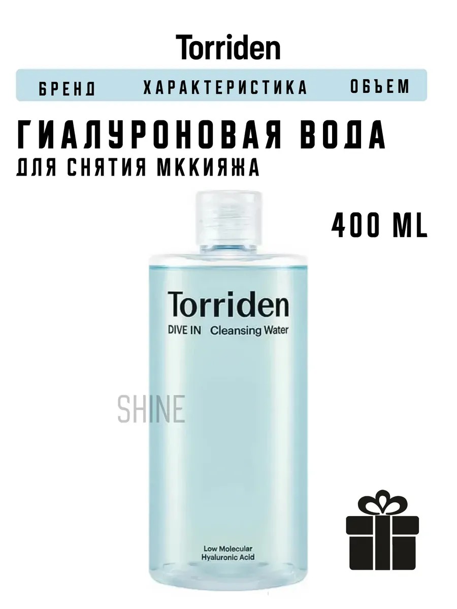 Torriden DIVE IN Low Molecular Hyaluronic Acid Cleansing Water gently cleanses the skin, removes eye and lip makeup, and doesn't cause irritation or tightness.