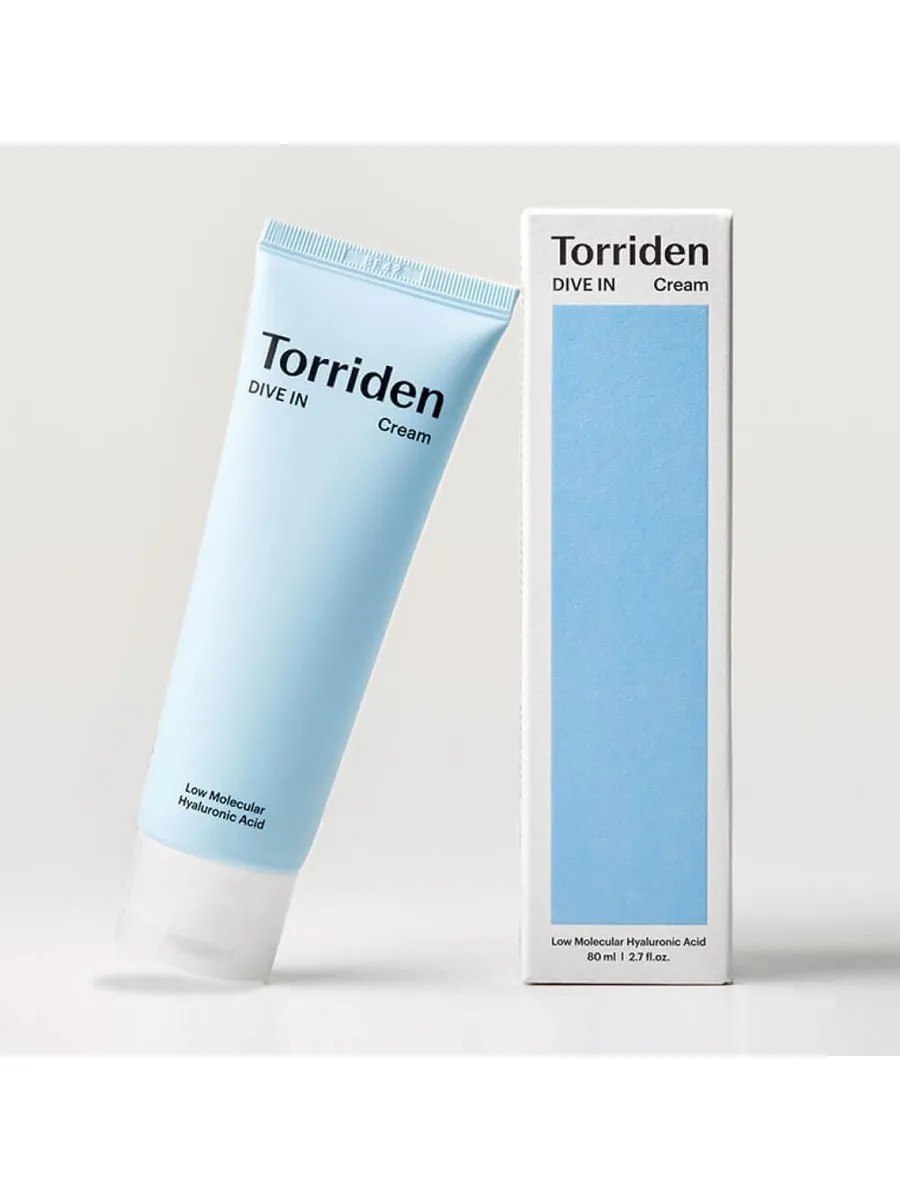 Torriden DIVE IN Low Molecular Hyaluronic Acid Cream, an intensive hyaluronic cream, works to maintain the necessary hydration level in cells, replenishes moisture deficiency, and effectively eliminates signs of dehydration.