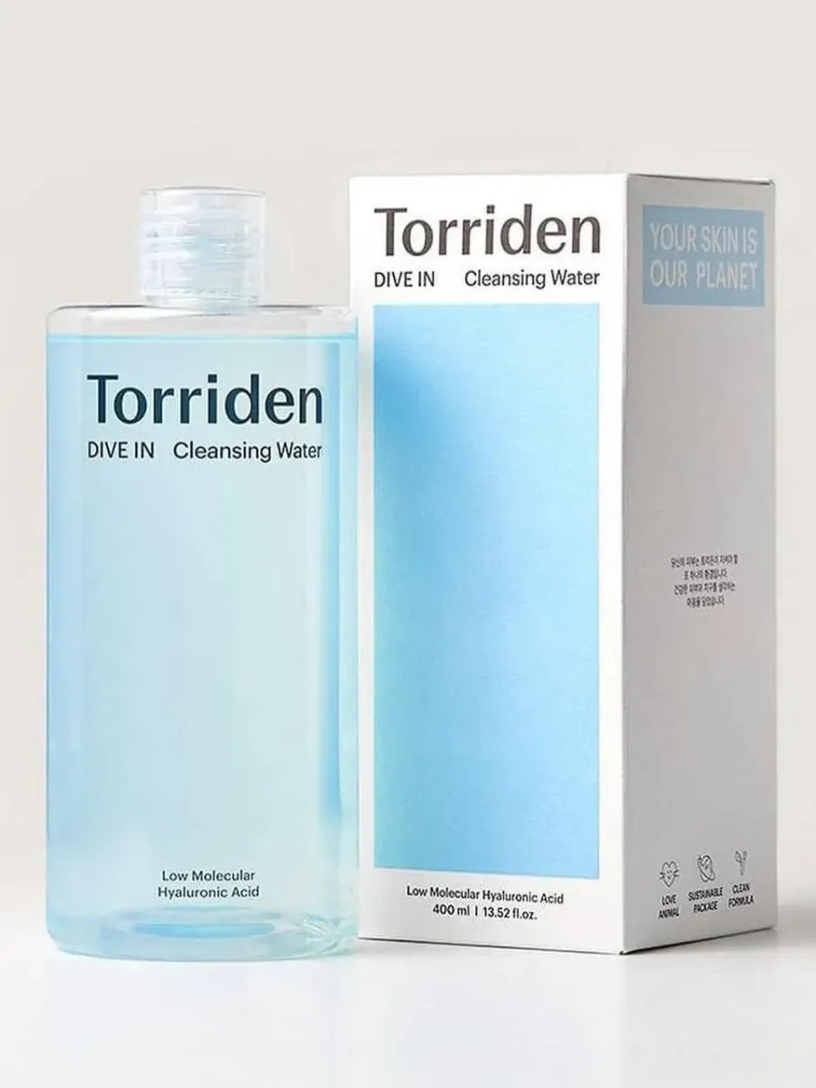 Torriden DIVE-IN Cleansing Water — это мицеллярная вода для снятия макияжа, которая бережно очищает кожу, увлажняет её и восстанавливает водный баланс. Основной акцент в этом продукте делается на увлажнение благодаря содержанию низкомолекулярной гиалуроновой кислоты, что делает его идеальным выбором для чувствительной и обезвоженной кожи.
