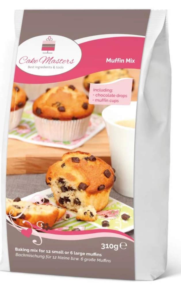 Muffin Mix 310g Preparation: Muffin mix (Package contents: 250g baking mix, 60g chocolate drops, 12 muffin capsules) You also need: 125ml cooking oil, 2 eggs, 75ml water 1. Preheat the oven to 200 C top bottom heat. Put the baking mixture together with the eggs, cooking oil and water in a mixing bowl and mix briefly at the lowest level, then mix at the highest level for 3 minutes until smooth. For chocolate muffins, add approx. 40g of the included chocolate drops. 2. Place the muffin capsules on a baking tray or muffin tray, distribute the mixture evenly between the cases and then decorate with the remaining chocolate chips. 3. Bake the dough on the middle level for approx. 15 - 20 minutes and then let it cool down. Ingredients: Baking mix: WHEAT FLOUR, sugar, WHEAT STARCH, SWEET WHEY POWDER, modified starch, raising agents (diphosphates, sodium carbonates), table salt. Chocolate chips: cocoa mass, sugar, cocoa butter, emulsifier lecithins. Cocoa: 50 at least Shelf life: at least 3 months from delivery of the goods Nutritional information: 100g contains on average: Calorific value: 1583 KJ 379 kcal Fat: 22 g of which total Fatty acids4.2 g Carbohydrates: 40g of which sugar: 22 g Protein: 5.2 g Salt: 0.8 gTorten Deko Shop Muffinmix – 310g Muffin Mix 310g Zubereitung: Muffin Mix (Packungsinhalt: 250g Backmischung, 60g Schokotropfen, 12 Muffinkapseln) Sie benötigen zusätzlich: 125ml Speiseöl, 2 Eier, 75ml Wasser 1. Backofen auf 200 C Ober- Unterhitze vorheizen. Die Backmischung zusammen mit den Eiern, dem Speiseöl und dem Wasser in eine Rührschüssel geben und zunächst kurz auf niedrigster Stufe verrühren, dann auf höchster Stufe 3 Min. glatt rühren. Für Schokomuffins ca. 40g der beiliegenden Schokotropfen hinzufügen. 2. Die Muffinkapseln auf ein Backblech oder Muffinblech setzen, die Masse gleichmäßig auf die Förmchen verteilen und anschließend mit den übrigen Schokostückchen dekorieren. 3. Backen Sie den Teig auf der mittleren Ebene für ca. 15 - 20 Min. und anschließend auskühlen lassen. Zutaten:Backmischung: WEIZENMEHL, Zucker, WEIZENSTÄRKE, SÜßMOLKENPULVER, modifizierte Stärke, Backtriebmittel (Diphosphate, Natriumcarbonate), Speisesalz. Schokostückchen: Kakaomasse, Zucker, Kakaobutter, Emulgator Lecithine. Kakao: 50 mindestens Haltbarkeit:mindestens 3 Monate ab Zustellung der Ware Nährwertangaben:100g enthalten durchschnittlich: Brennwert:1583 KJ 379 kcal Fett:22 g davon ges. Fettsäuren4.2 g Kohlenhydrate:40 g davon Zucker:22 g Eiweiß:5.2 g Salz:0.8 g