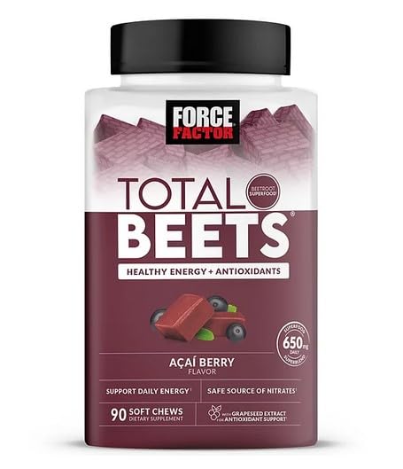 Force Factor Total Beets Healthy Energy + Antioxidants Acai Berry 325 mg 60 Chews