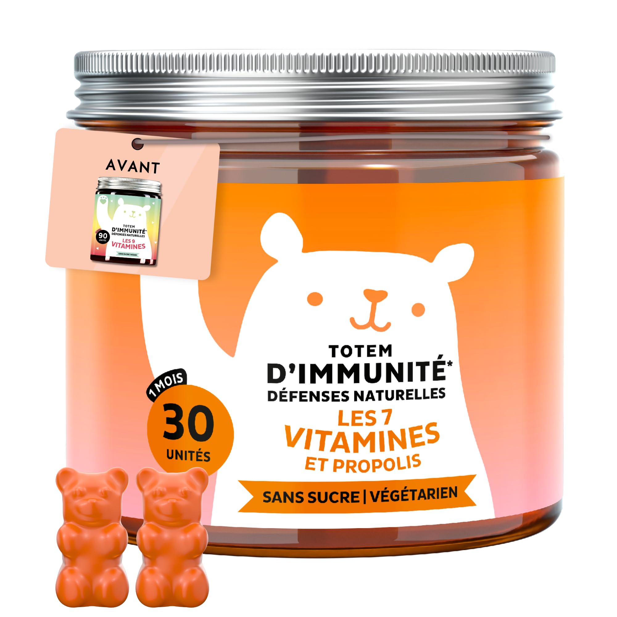 Totem d'Immunit D fenses Naturelles avec Vitamine D E C Vitamine B6 B12 Niacine Biotine Extrait de Propolis 30 Pi ces (1 Mois) V g tariennes Sans Sucre Bears with Benefits 30 gummies - 1 mois