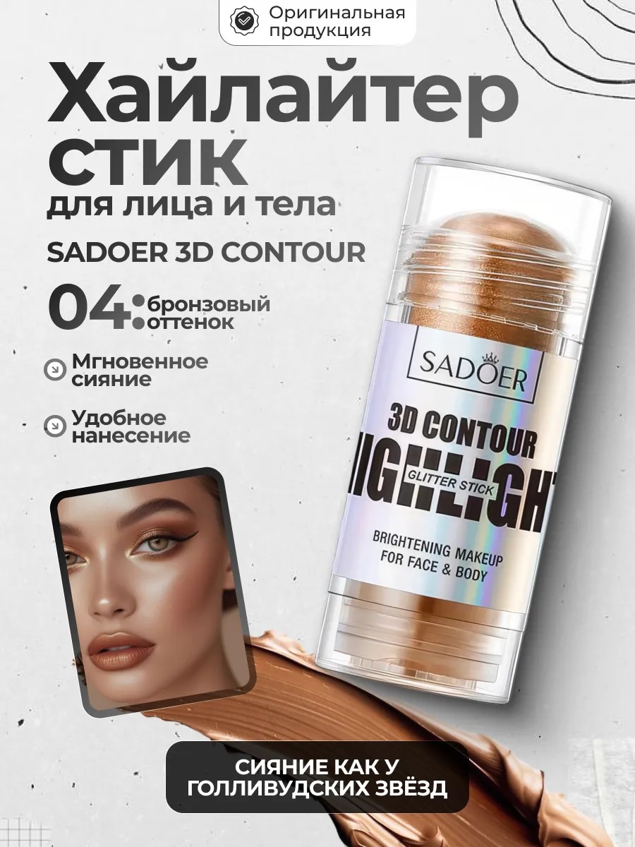 Хайлайтер стик для лица и тела + корректор. Хайлайтер для лица – это незаменимый аксессуар в вашем арсенале косметики для создания идеального макияжа. Блестки этого хайлайтера придают вашему лицу невероятное сияние, которое подчеркнет красоту и улучшит вид кожи.