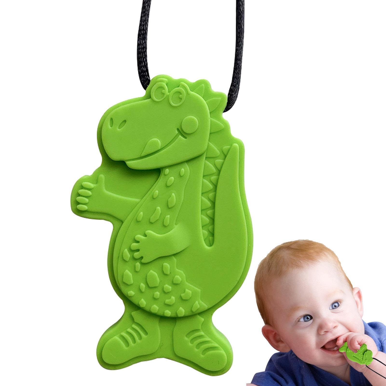 Zähe Halskette | Silikon-Dinosaurier-Kauspielzeug für Kinder - Kauhalskette für Kinder, tragbares Zappelspielzeug, Beißhalskette für sensorische Kinder Zonewd Grün