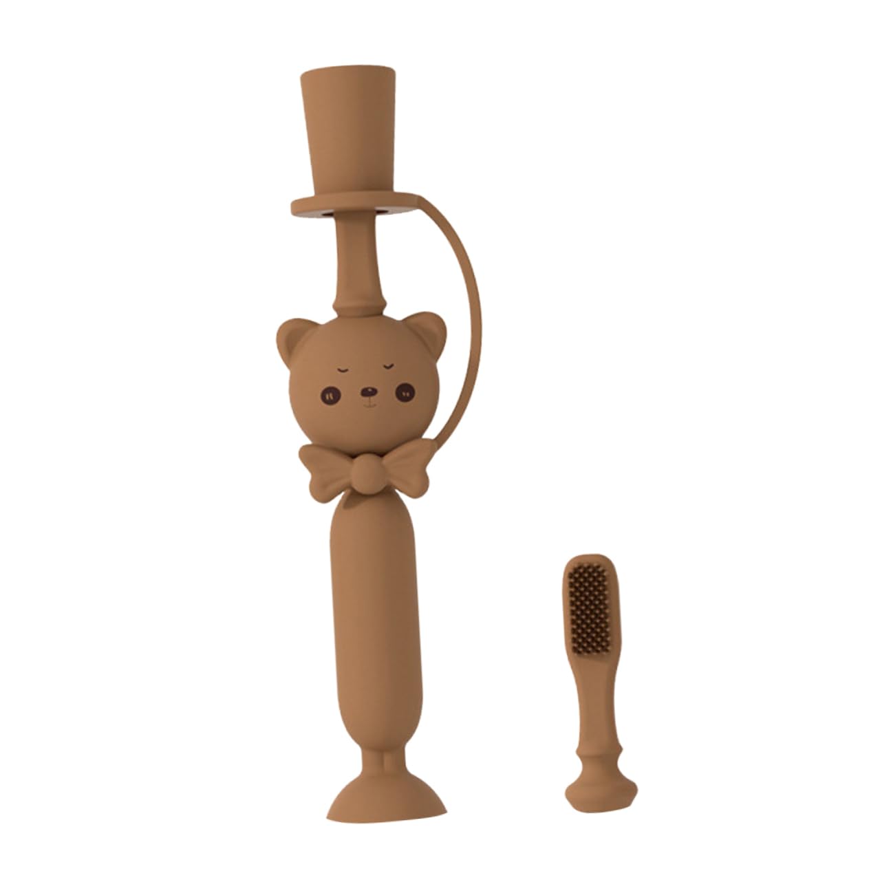 mouth care toothbrush: finely processed with suction cup design on the underside for easy installation on the desk.Training toothbrush.Training toothbrush: Nice bear pattern with a comfortable handle, not easy to slip and look comfortable.Silicone toothbrush: Soft bristles clean the teeth of children and the bite pad with a unique handle relieves gum pain.Children's toothbrush: Causproof, soft silicone material does not hurt gums and teeth.First toothbrush.Children's toothbrush: made of material, safe and durable for a long service life.toothbrush.