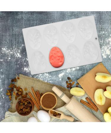 TOVINANNA 8 Egg-Shaped Molds Scented Candle Molds Easter Egg Fondant Molds Easter Egg Baking Mold Easter Egg Cake Molds Easter Silicone Cake Mold Jelly Molds Dessert Silica Gel Flower Shape 26.5X16.8CM White2