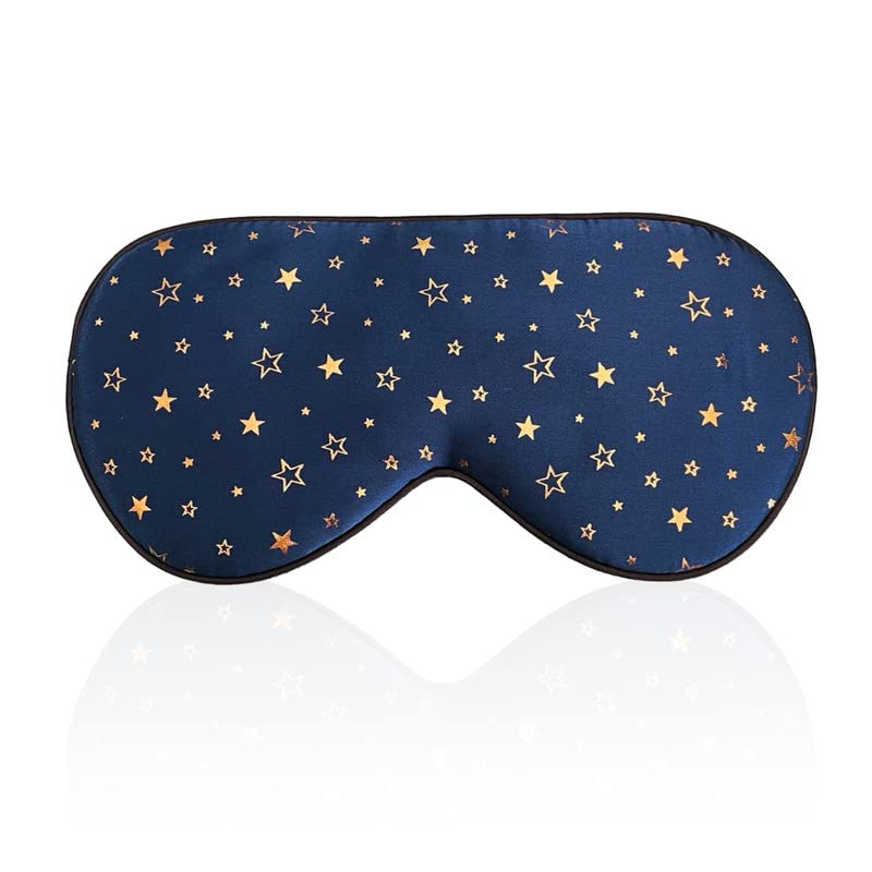 townssilk 100% Silk Sleep mask with Silk Adjustable Strap Comfortable and Super Soft Eye mask Ultimate Sleeping aid Blindfold goldenstar-Bule Goldstar-bule