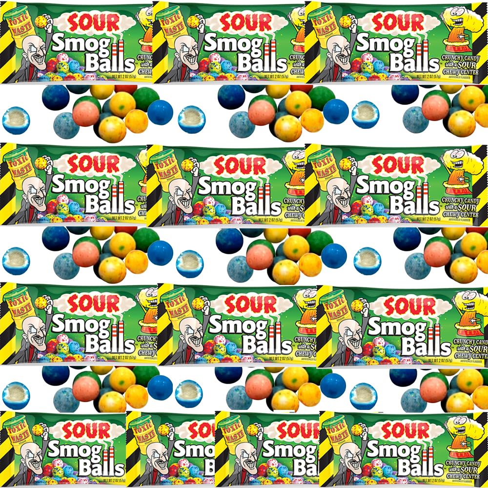 Toxic Waste Smog Balls Bags 48g - Crunchy candy with a sour chewy centre (Half box (12 bags))