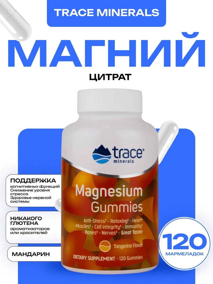 Trace Minerals Magnesium Gummies – это магний в форме вкусных жевательных конфет для детей. Содержат магний цитрат, который легко усваивается и поддерживает здоровье нервной системы и мышц. Эти витамины для детей помогают восполнить дефицит магния и поддерживать общее состояние здоровья. Цитрат магния обеспечивает оптимальное усвоение, делая этот продукт идеальным для детского организма. Магний для детей важен для развития костной и мышечной ткани. Magnesium Gummies от Trace Minerals – это удобный способ обеспечить детей необходимым магнием в повседневной жизни.