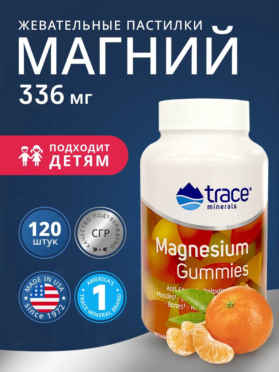 Magnesium Gummies Trace Minerals stabilize the nervous system. Magnesium lozenges help properly develop a child's body systems during periods of active growth. Chewable magnesium gummy bears are also recommended for adults, allowing the whole family to replenish magnesium deficiency. Magnesium for pregnant women has high bioavailability and is easily absorbed.
