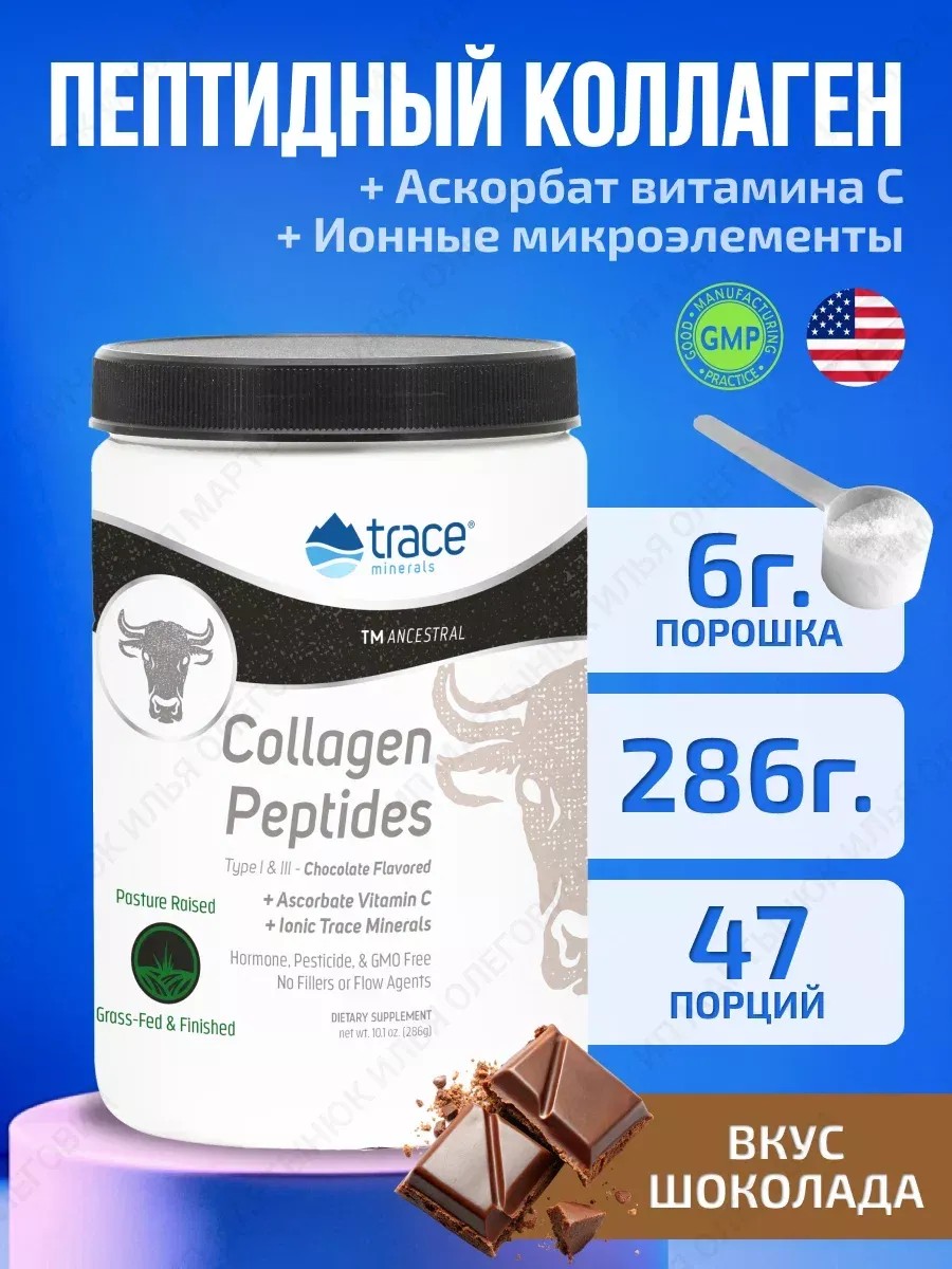 Trace Minerals Пептидный коллаген порошок + Витамин C - 286 гр Шоколад