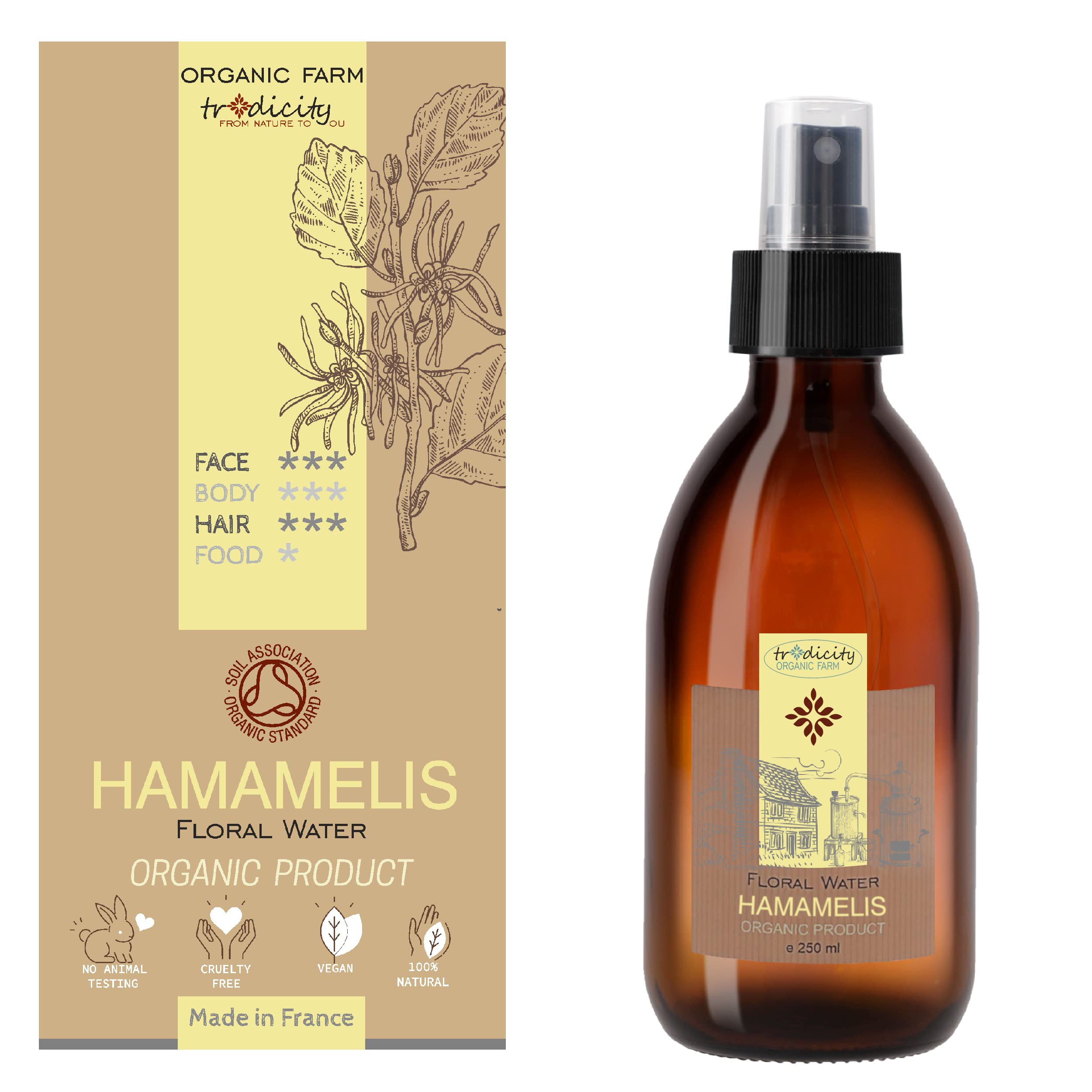 tradicity ORGANIC FARM Organic Hamamelis Hydrosol astringent facial tonic oily skin cleanser pore reducer sebum regulator soothing antiwrinkle eye contour 250 ml