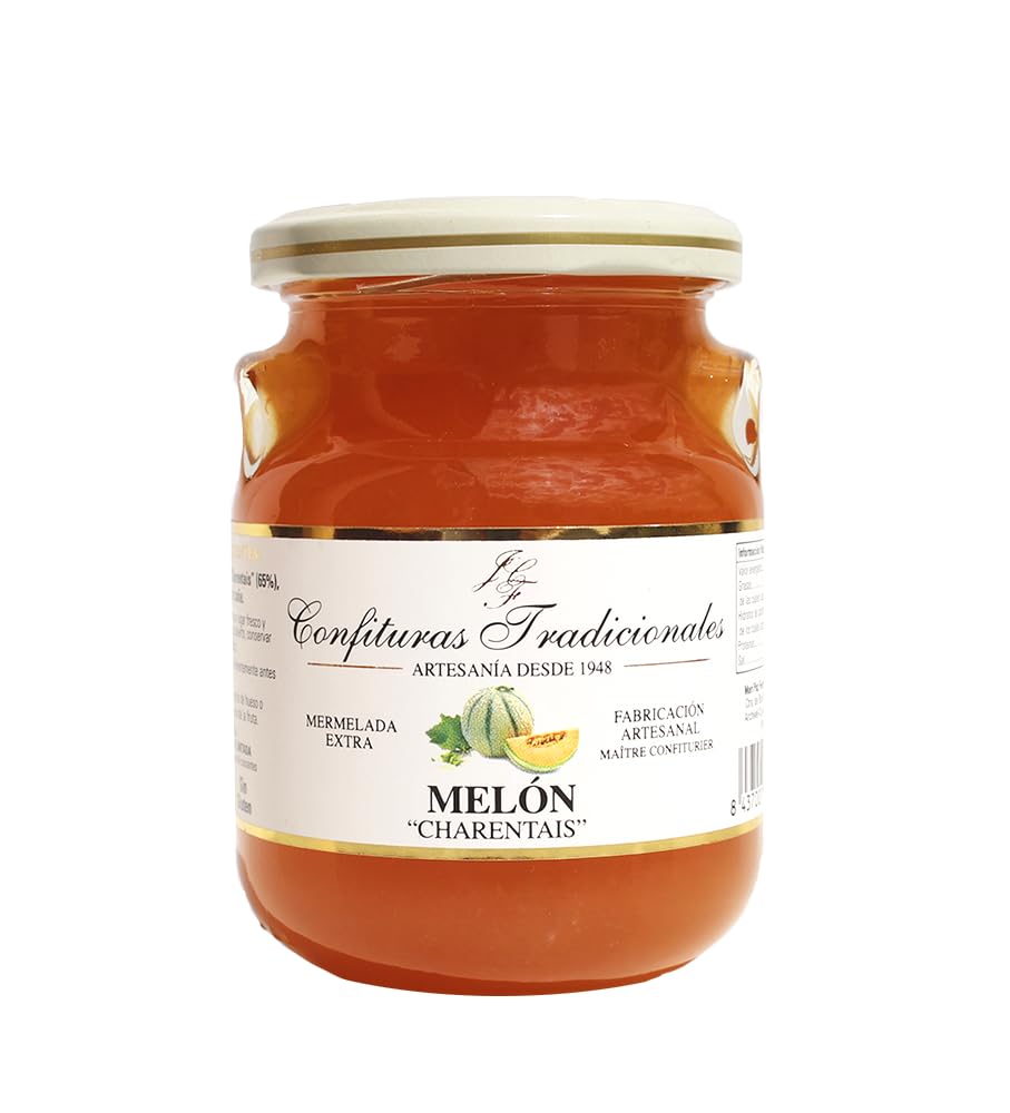 A jam made with the Cantalupo melon's French cousin, but with melons from the fields of Murcia. This recipe was originally made with melons from a town in the south of France called "Cavaillon".Buy multiple units and get a single shipping fee. They make their jams using the traditional method: doing the entire process by hand with only fruit and cane sugar, resulting in an unprecedented gastronomic journey. Premium classic jams with no additives. They recently added the Double Silver Medal and Bronze Medal to their long list of awards at the 2024 World Marmalade Awards. Confituras Tradicionales makes artisanal jams that have won international awards and are considered among the best jams in the world. A classic from French Provence adapted to our terroirs. In this jam, the bright orange melon pieces will delight lovers of this refreshing summer fruit. A jam made with the French cousin of the Cantalupo melon, but with melons from the fields of Murcia. This recipe was originally made with melons from a town in the south of France called "Cavaillon." Une confiture réalisée avec le cousin français du melon Cantalupo, mais avec des melons des champs de Murcie. Cette recette a été réalisée à l'origine avec des melons provenant d'une ville du sud de la France appelée "Cavaillon".Achetez plusieurs unités et bénéficiez de frais d'expédition uniques. Ils fabriquent leurs confitures selon la méthode traditionnelle : faire tout le processus à la main uniquement avec des fruits et du sucre de canne pour obtenir ainsi un voyage gastronomique sans précédent. Confitures classiques haut de gamme sans additifs. Ils ont récemment ajouté à leur longue liste de récompenses la Double Médaille d'Argent et la Médaille de Bronze obtenues au concours international World Marmalade Awards 2024. Confituras Tradicionales fabrique des confitures artisanales qui ont remporté des prix internationaux et sont considérées parmi les meilleures confitures du monde. Un classique de la Provence française adapté à nos terroirs. Dans cette confiture, les morceaux de melon orange vif raviront les amateurs de ce fruit d'été rafraîchissant. Une confiture réalisée avec le cousin français du melon Cantalupo, mais avec des melons des champs de Murcie. Cette recette a été réalisée à l'origine avec des melons provenant d'une ville du sud de la France appelée "Cavaillon".