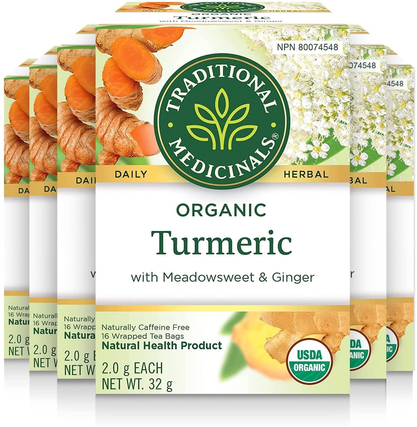Traditional Medicinals - Organic Turmeric with Meadowsweet and Ginger Herbal Tea (Pack of 6) - Traditionally Used To Relieve Inflammation And Aid In Digestion - 96 Tea Bags Total Tea Tumeric with Meadowsweet and Gigner 16 Count (Pack of 6)