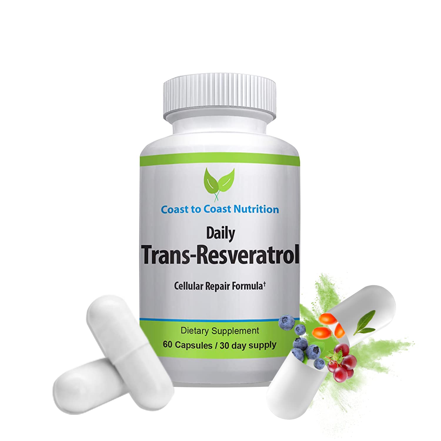 Our 100 Natural Trans Resveratrol antioxidant is free of extraneous fillers, binders, artificial ingredients, potentially harmful preservatives or GMOs. Our high potency supplement is formulated in GMP compliant facilities, subjected to stringent third party purity testing, and made in the USA. Each daily dosage contains 600 mg - delivering maximum strength nutritional benefits! Each bottle contains 60 capsules and is a 30-day supply. Resveratrol is a member of a group of plant compounds called polyphenols. These compounds have antioxidant properties. Resveratrol is found in the skin of red grapes and other sources include berries and peanuts. Rich polyphenol abundantly found in our Dail Trans-Resveratrol, you get optimal nutritional value. Its nature's (and our) way of making you look and feel great! Why Choose Coast to Coast Nutrition Daily Trans-Resveratrol? Our mission as a company is to provide you with the highest quality ingredients to improve your lifestyle. Our facility maintains strict cGMP Standards and all of our dietary supplements are made in the USA.